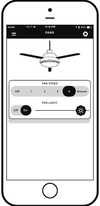 - OFF/ON (IŠJUNGTA/ĮJUNGTA) - Išjungia arba įjungia ventiliatoriaus šviesą. Pasirinkite ir slinkite, kad pritemdytumėte arba paryškintumėte šviesą.