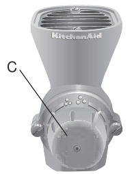 - Select the finest grind setting by turning the adjustment knob (C) clockwise to the Fine Grind Symbol (A). (Pasirinkite smulkiausią malimo nustatymą pasukdami reguliavimo rankenėlę (C) pagal laikrodžio rodyklę į Fine Grind Symbol (Smulkaus malimo simbolį) (A).)