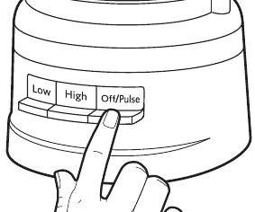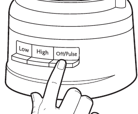 Jei greičio lemputė išsijungia, o Off/Pulse (Išjungti/Pulsas) lemputė mirksi, palaukite, kol Off/Pulse (Išjungti/Pulsas) lemputė išsijungs, ir bandykite dar kartą.