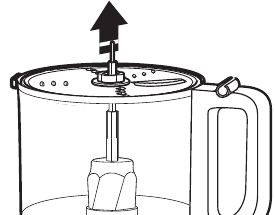 - Laikykite rankas ir indus atokiau nuo judančių ašmenų ar diskų apdorojant maistą, kad sumažintumėte sunkios žalos žmonėms arba maisto smulkintuvo sugadinimo riziką. Galima naudoti grandiklį, bet jį reikia naudoti tik tada, kai maisto smulkintuvas neveikia.