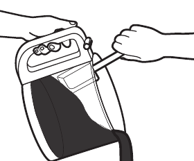 - Uždėkite darbo dubens dangtelį ir įsitikinkite, kad dangtelio skląstis yra paspaustas žemyn į užrakintą padėtį.