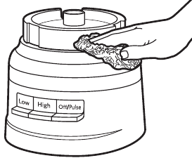 - Prieš valydami paspauskite OFF/PULSE (IŠJUNGTI/PULSAS) mygtuką, tada atjunkite maisto kombainą nuo elektros tinklo.