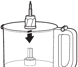 PASTABA: Kad būtų lengviau surinkti, įdėkite norimą peilį arba diską prieš pritvirtindami darbo dubens dangtelį.