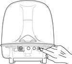 | Nėra garsumo arba mažas garsumas. | Palieskite garsumo "Aukštyn" (+) padėklą ant garsumo valdymo palydovo, kad atšauktumėte nutildymą ir (arba) padidintumėte sistemos garsumo lygį. Pastaba: palietus garsumo "Žemyn" (–) padėklą, sistemos garsumas sumažėja. Palietus abu (+) ir (–) garsumo valdymo padėklus vienu metu, sistema bus nutildyta. | |
