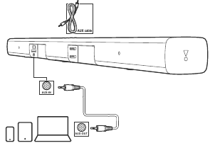 - Naudodami analoginį kabelį, prijunkite soundbar'o AUX IN (3,5 mm lizdą) prie nešiojamųjų įrenginių AUX OUT / 3,5 mm jungčių.