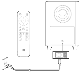 - Įjunkite soundbar'ą ir žemų dažnių garsiakalbį. Jei ryšys nutrūksta, žemų dažnių garsiakalbio šviesos diodo indikatorius lėtai mirksi.
