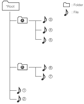 Dainos jūsų USB įrenginyje naudoja toliau nurodytą logiką muzikai leisti.