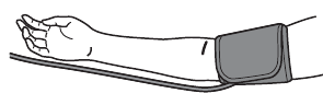 ![]() | Drabužiai trukdo rankos manžetei. | Pašalinkite visus drabužius, trukdančius rankos manžetei. |