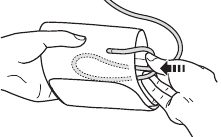- Švelniai sulenkite oro vamzdelį į rankos manžetę.