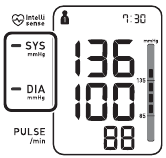 ![]() | Aptikti nereguliarūs širdies dūžiai. | Nuimkite rankos manžetę. Palaukite 2–3 minutes ir atlikite dar vieną matavimą. Pakartokite veiksmus, aprašytus skyriuje „Matavimas“. Jei ši klaida ir toliau rodoma, kreipkitės į gydytoją. |