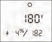 Kai būsite šiame režime, lauke pamatysite " - - - ", informuojantį, kad esate nuolydžio +/- režime. Paspauskite maitinimo / paleidimo mygtuką, kad gautumėte atstumą iki vėliavos ar kitų objektų. Kai atstumas bus rodomas, atleiskite maitinimo / paleidimo mygtuką. Kai atleisite maitinimo / paleidimo mygtuką, po standartiniu atstumu bus rodomas nuolydžio procentas ir kompensuotas atstumas.
