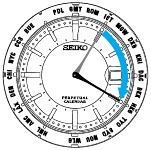 - Jei karūnėlė ištraukiama iki antro spragtelėjimo, o ne iki pirmo spragtelėjimo, ir įstumiama atgal į normalią padėtį, laikrodis nerodys kalendoriaus.
