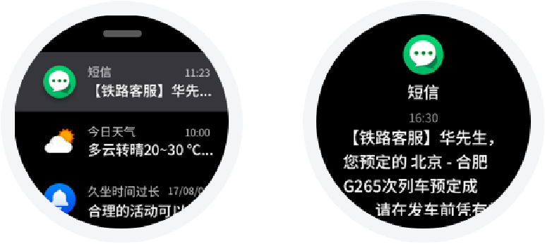 Esant silpno apšvietimo režimui, budėjimo būsenoje ekrane rodomas tik laikas (rodyklė ir skaitmeninis laikas atitinkamai rodomi rodyklės laikrodžio ekrane ir skaitmeniniame laikrodžio ekrane). Visas laikrodžio ekranas nebus rodomas, kol nepakelsite riešo. Kai gaunamas pranešimas, laikrodžio ekranas įsijungs, kad būtų rodomas pranešimo turinys.