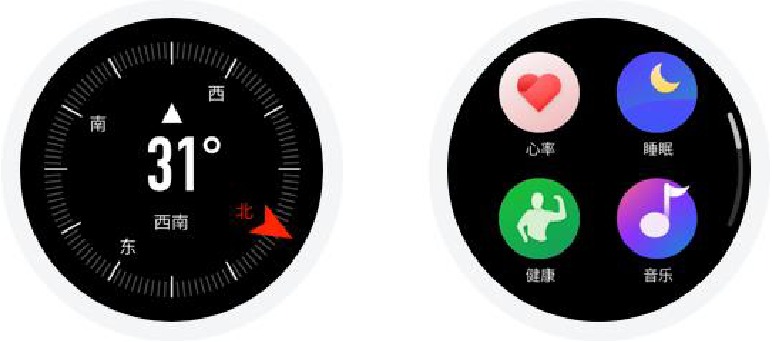 Programos nurodo konkrečią laikrodžio funkciją, kurią galima naudoti atskirai, pvz., miegas, širdies ritmas, kompasas ir kt.