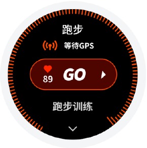 Įėjus į pasirengimo puslapį lauko veiklai, pvz., bėgimui, laikrodis automatiškai ieškos GPS signalo. Kai tik signalas bus gautas, palieskite GO (Pirmyn), kad pradėtumėte bėgti. Įėjus į patalpų veiklą, pvz., elipsinį treniruoklį, palieskite GO (Pirmyn), kad pradėtumėte veiklą.