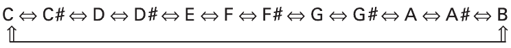 Nata: C, C#, D, D#, E, F, F#, G, G#, A, A# ir B