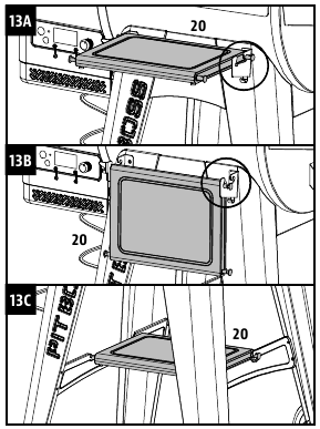 - Padėkite priekinę lentyną ant priekinės lentynos atraminių konsolių. Žr. 13A iliustraciją kaip išskleistą priekinę lentyną.