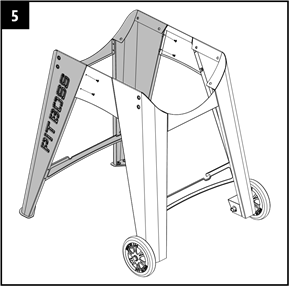 - Atsukite du iš anksto įsuktus varžtus iš pagrindinės statinės šono. Pirmiausia užkabinkite dešinįjį šoninį staliuką ant varžtų, tada pritvirtinkite du iš anksto atlaisvintus varžtus į vietą.