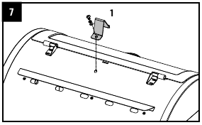 - Pritvirtinkite dangčio stabdį ant pagrindinės statinės viršaus, naudodami iš anksto įsuką varžtą pagrindinės statinės viršuje.
