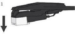 - Užfiksuokite Hold Down Clip (fiksavimo spaustuką), kad pritvirtintumėte tonarmą.