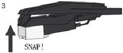 - Įkiškite adatą priekine dalimi žemyn kampu ir švelniai pakelkite priekinę adatos dalį aukštyn, kol ji užsifiksuos.