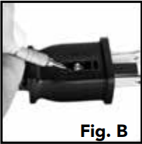 - Gavę pakeitimą, naudokite nedidelį plokščiagalvį atsuktuvą, kad atidarytumėte saugiklio dangtelį (esančią ant kištuko) (žr. A pav.).
