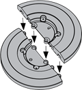 - Surinkite dvi pagrindo puses. Padėkite pagrindo pusę su išlyginimo kaiščiu ant kitos pagrindo pusės su išlyginimo lizdais. Spauskite abi puses kartu, kol jos susilygins. (Žr. A paveikslą)