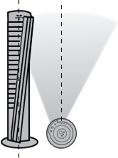 Skirtingai nei bet kuris kitas bokštinis ventiliatorius, šis produktas sukuria platų oro srauto diapazoną, vadinamą V-Flow™ Circulation (V-Flow™ cirkuliacija). Vornado logotipas rodo V-Flow™ oro srauto centrinį tašką ir gali būti naudojamas kaip atskaitos taškas nustatant produkto padėtį kambaryje. (Žr. D paveikslą)