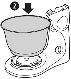 - Pasukite maišymo dubenį pagal laikrodžio rodyklę, kol jis užsifiksuos.