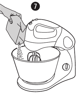 - Visada pradėkite maišyti mažu greičiu, ypač maišydami miltus ar cukraus pudrą.