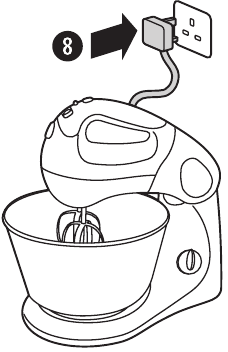 - Įjunkite maišytuvą į maitinimo lizdą.
