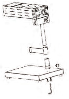 - Sumontuokite dalis pagal instrukcijas, naudokite išskirtinį šešiakampį veržliaraktį pagrindui montuoti, kaip parodyta paveikslėlyje žemiau.