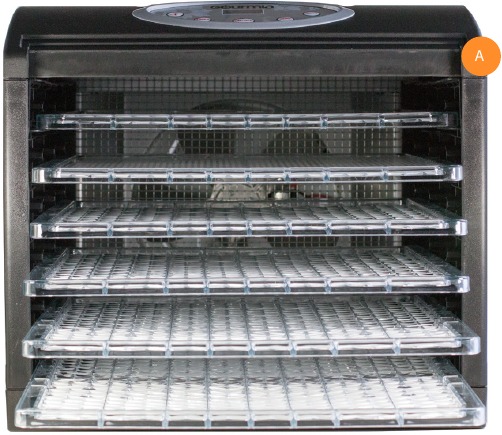 - Sudėkite paruoštą maistą ant džiovinimo padėklų (žr. maisto paruošimo patarimus). Neperkraukite džiovinimo padėklų maistu.