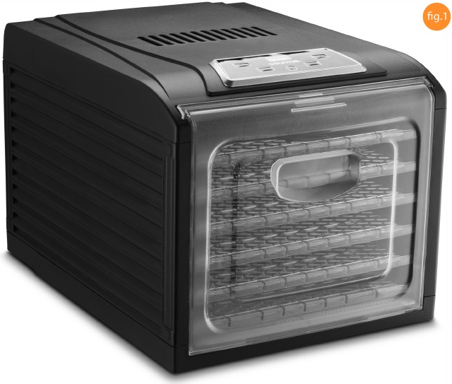 "EasyVue" durelės (1 pav.) Svarbi "Cut + Dry" džiovintuvo savybė yra "EasyVue" durelės, kurios yra skaidrios, kad būtų galima greitai peržiūrėti. Džiovinimo procesą galima stebėti neatidarant durelių. Tai sumažina šilumos nuostolius ir leidžia matyti visus padėklų lygius.