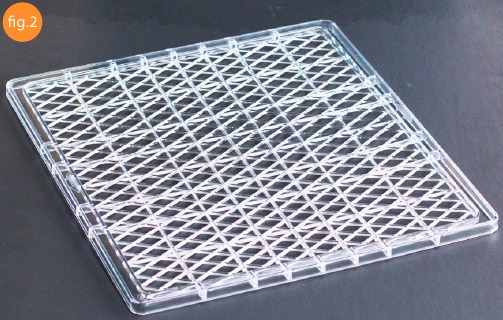 Džiovinimo padėklai (2 pav.) Su "Cut + Dry" džiovintuvu yra 6 (šeši) plastikiniai džiovinimo padėklai. Šie padėklai suteikia pakankamai vietos išdžiovinti didelį kiekį maisto vienu paprastu veiksmu. Plastikiniai padėklai nėra skirti laikyti labai sunkų maistą. Jie yra kruopščiai perforuoti, kad oras galėtų cirkuliuoti džiovinimo metu ir kad bet kokia drėgmė ar nuolaužos nukristų į lašėjimo padėklą.