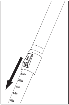 - Prijunkite teleskopinį vamzdį (12) prie rankenos (14).