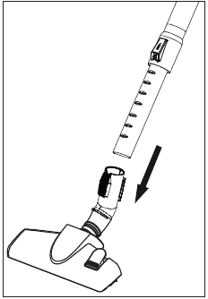 - Prijunkite teleskopinį vamzdį (12) prie parketo/kilimų šepečio (10) rodyklės kryptimi.