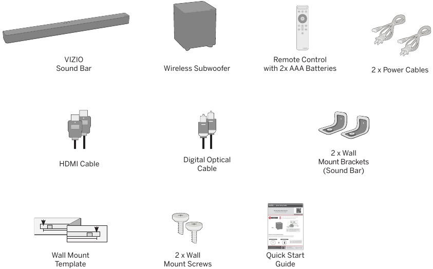 ![Vizio - M serija - Pirmą kartą nustatant – 3 veiksmas – prijunkite garso juostą Pirmą kartą nustatant – 3 veiksmas – prijunkite garso juostą]()