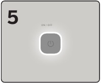 - Pirmiausia patvirtinkite, kad maitinimo LED indikatorius dega. Paspauskite ir palaikykite ON/OFF (įjungimo/išjungimo) mygtuką žemų dažnių garsiakalbio gale 5 sekundes. LED lemputė žemų dažnių garsiakalbio gale pradės mirksėti.