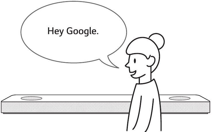 "Google Assistant" reaguoja tik į balso komandas, kai naudojate "Wi-Fi" arba BT (Bluetooth) kaip įvestį. Jei naudojate HDMI, Optical, ARC, Optical Sound Sync arba USB įvestį, turite naudoti