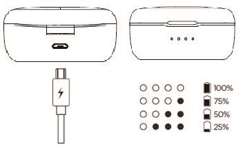 - Zorg ervoor dat beide oordopjes in de oplaadcase zitten met het deksel gesloten, open vervolgens het deksel en haal de headset eruit. De oordopjes zullen blauw en rood knipperen.
