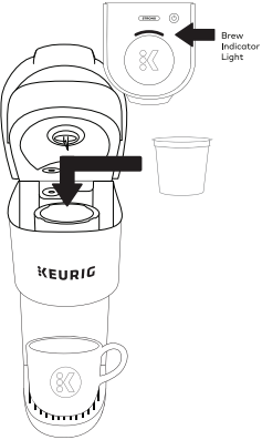 Til de hendel op en laat deze zakken. Plaats geen K-Cup® pod. Het brouwindicatielampje knippert om aan te geven dat het apparaat klaar is.