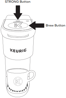 Druk op de brouwknop - voor sterkere koffie drukt u op de STRONG (STERK) knop voordat u op de brouwknop drukt. Het brouwindicatielampje brandt continu en begint vervolgens te pulseren terwijl het apparaat opwarmt. Na ongeveer 2 minuten brandt het brouwindicatielampje weer continu en begint de drank te stromen. Het brouwen is voltooid wanneer het brouwindicatielampje niet meer brandt. Wanneer het klaar is, tilt u de hendel op en gooit u de gebruikte K-Cup® pod weg.