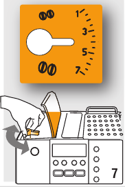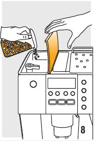 - Haal het nieuwe filter uit de verpakking en ga verder zoals geïllustreerd in de vorige paragraaf (punten 3-4-5-6).