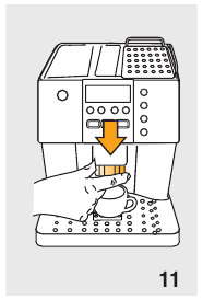 | De koffie wordt te langzaam of druppelsgewijs afgegeven. | De koffie is te fijn gemalen. | Draai de maalinstelknop één klik rechtsom richting "7" terwijl de koffiemolen in werking is (afb. 11). Ga steeds één klik verder tot de koffieafgifte naar wens is. Het effect is pas zichtbaar na het bereiden van 2 koppen koffie (zie het hoofdstuk: "de koffiemolen afstellen"). |