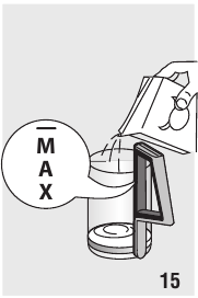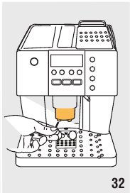 - Sluit het reservoir af met het deksel en plaats het reservoir terug in de machine (fig. 39).