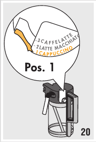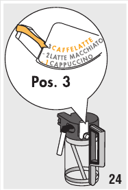 | de regelaar voor melkopschuiming staat in de stand "CAFFElATTE". | Zet de melkregelaar in de stand "CAPPUCCINO". | |