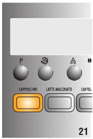 - CAPPUCCINO button (knop): levert 1 cappuccino (of melkschuim als er twee keer achter elkaar op wordt gedrukt)