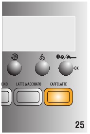 2 long coffees (2 lange koffie) button (knop) - CAFFELATTE button (knop): levert 1 caffelatte (of warme melk als er twee keer achter elkaar op wordt gedrukt)