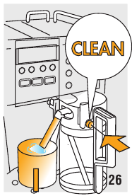 | PRESS CLEAN (REINIGEN DRUKKEN) | Er is onlangs melk geleverd en de buizen in het melkreservoir moeten worden gereinigd. | Druk op de knop "Clean" (Reinigen) en blijf drukken totdat de voortgangsbalk is voltooid. "Cleaning underway" (Reiniging bezig) wordt weergegeven. |
